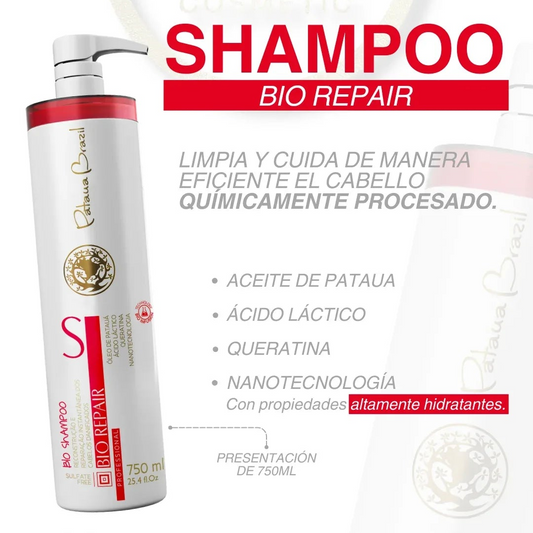 Bio Repair Bio Shampoo 750ml - Champú Reparador Sin Sulfatos con Aceite de Patauá